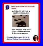 "We have much power waiting to be utilized. The key is to know how to access the power of the mind. Heightened awareness & Interactive Self-Hypnosis are two powerful ways to achieve your goals. As you learn to work with your "inner mentors" or advisors, creative answers & ideas come forth easily.".......Elizabeth Bohorquez, RN, C.Ht